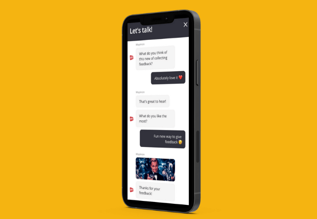 We hebben chat-technologie gecombineerd met onze gebruiksvriendelijke survey builder. Met Conversational Feedback kom je op een andere manier in contact met je klanten en kom je meer te weten over je klanten. Je kunt het feedbackformulier perfect laten aansluiten op je huisstijl, of je nu in je mobiele app of via je website feedback wil verzamelen.